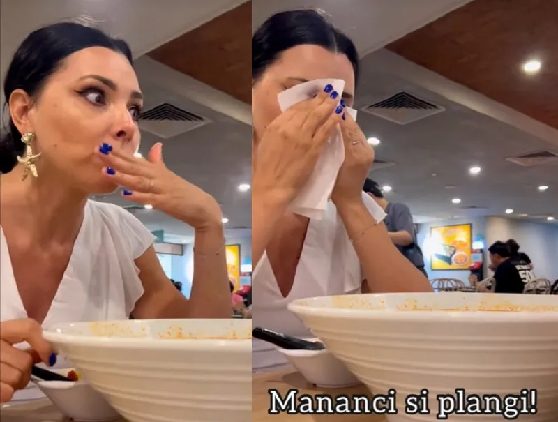 Mănânci și plângi. La propriu și la figurat. Deci, nu! Mă ustură toate cele. Dar a fost super bun. Nu mă întrebați cum a fost desertul, pentru că habar nu am. Am comandat un desert foarte popular în Asia de sud-est, ceva cu lapte de cocos și multă gheață și jeleu.” a mai spus vedeta.
