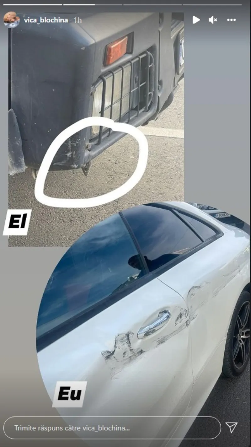 „Vorbea la telefon unul pe basculantă și a intrat în mine. Nu am văzut, s-a urcat pe mine efectiv. Mi-a făcut mașina praf. Amiabilă am făcut”, a relatat Vica.