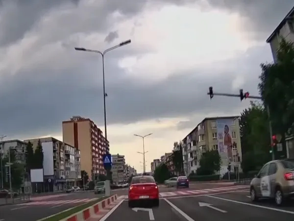 În județul Brașov, un șofer nu a mia putut opri la culoarea roșie a semaforului și a intrat cu viteză în intersecție.