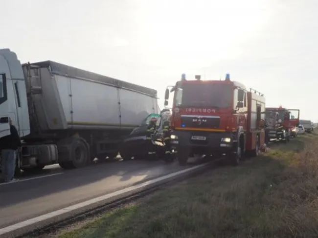 O luptă a orgoliilor i-a fost fatală unui bărbat de 60 de ani din Alexandria. Bărbatul, pasager într-o autoutilitară, a murit strivit după ce mașina a fost prinsă ca într-o menghină, între cele două TIR-uri. Spiritele s-ar fi încins după o ceartă pe stația de emisie-recepție.