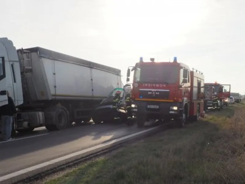 Un bărbat de 60 de ani a murit nevinovat, după ce autoutilitara în care se afla ca pasager a fost strivită de două tiruri.
