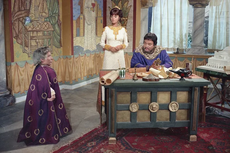Scenă din film cu Orson Welles, Sylva Koscina și Michael Dunn - Foto: Facebook/Studiourile Buftea