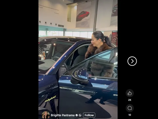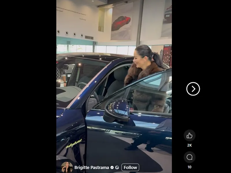 „Moș Crăciun” a fost extrem de darnic cu Brigitte Pastramă în acest an. I-a adus un bolid Porsche de peste 130.000 €, care se laudă cu 470 de cai putere pe benzină, dar merge și electric.