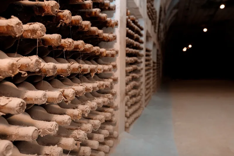 La o adâncime de 80 m, în căsuțe-caze, în butelii acoperite cu praf, mucegai și pânză de păianjen, vinurile își duc liniștite traiul de zi cu zi.