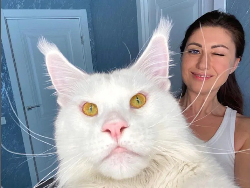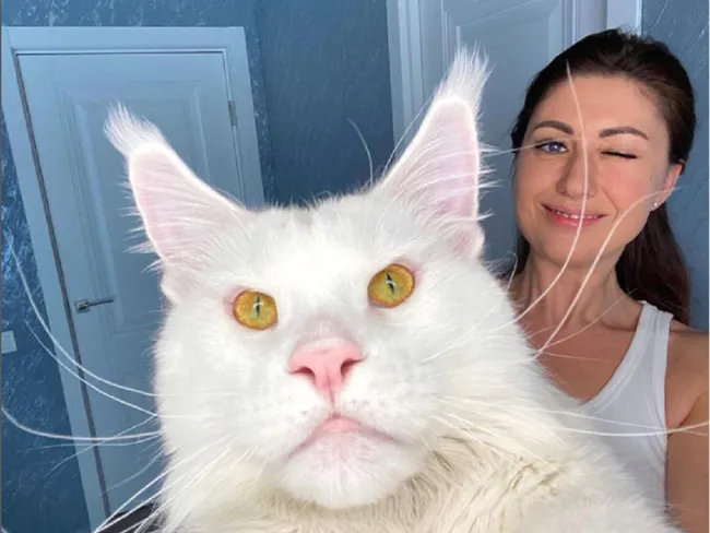 Kefir, din rasa Maine Coon, nu este străină de lumina reflectoarelor, deoarece proprietara lui, Yulia Minina distribuie în mod regulat postări pe Instagram în care arată felina în diferite ipostaze.