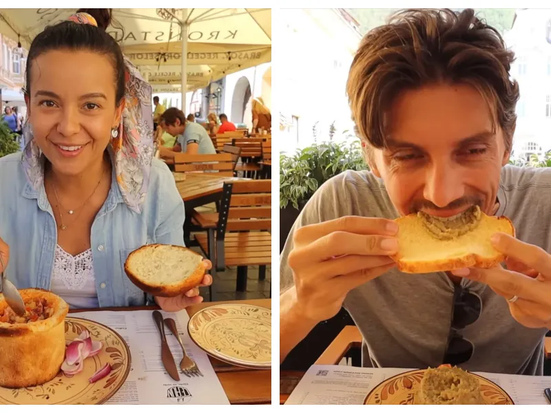 Aimara și Gordon, doi tineri din SUA, au vândut tot ce aveau pentru a călători în întreaga lume. Ajunși în România, la Brașov, au testat preparatele tradiționale, ciorbă de fasole în pâine, sarmale și papanași, și, se pare, au rămas uimiți.