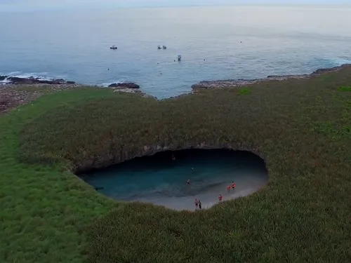 Plaja este situată în interiorul unui crater care s-a format în timpul bombardamentelor pe care guvernul mexican le-a desfășurat pe insulele Marieta nelocuite, ca parte a instruirii militare de la începutul secolului al XX-lea, conform milenio.com.