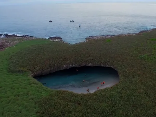 Fotograful Tarsicio Suarez a folosit o dronă pentru a filma Playa del Amor, cunoscută și sub numele de Hidden Beach, din Insulele Marieta, în largul coastei Riviera Nayarit din Mexic.