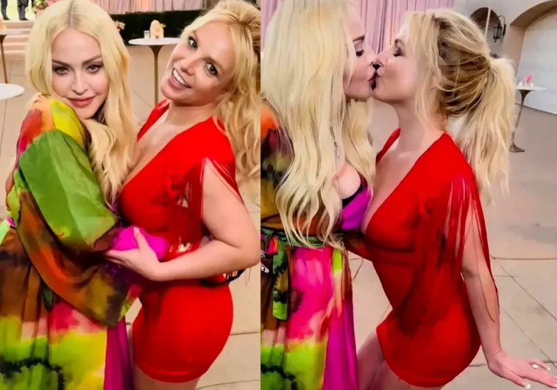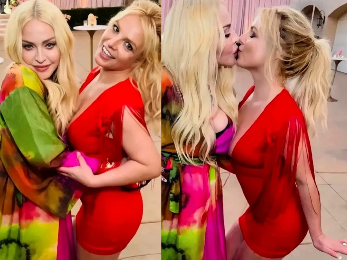 Madonna a avut parte de un moment intim cu Britney Spears chiar la nunta ei, pe 9 iunie. Spears, în vârstă de 40 de ani, a uimit într-o rochie roșie Versace sexy. Ea s-a aplecat pentru a-i oferi Madonei un sărut.