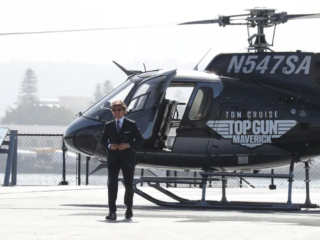 "Nu am vrut ca anul să se încheie fără să vă mulțumesc tuturor pentru că ați venit în cinematografe și vă mulțumesc pentru că ați susținut "Top Gun: Maverick'", a strigat Cruise peste zgomotul făcut de palele elicopterului.