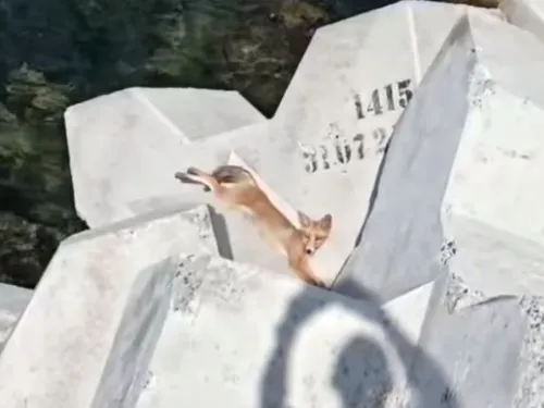 O vulpe a fost filmată în timp ce se relaxa pe stabilopozi, în Eforie Nord. Animalul se bucura de soare și de briză, când a fost observată și filmată de un turist.