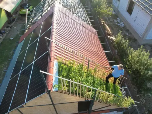 VIDEO Panouri fotovoltaice și grădină cu roșii și gogoșari pe acoperiș. A economisit mii de euro