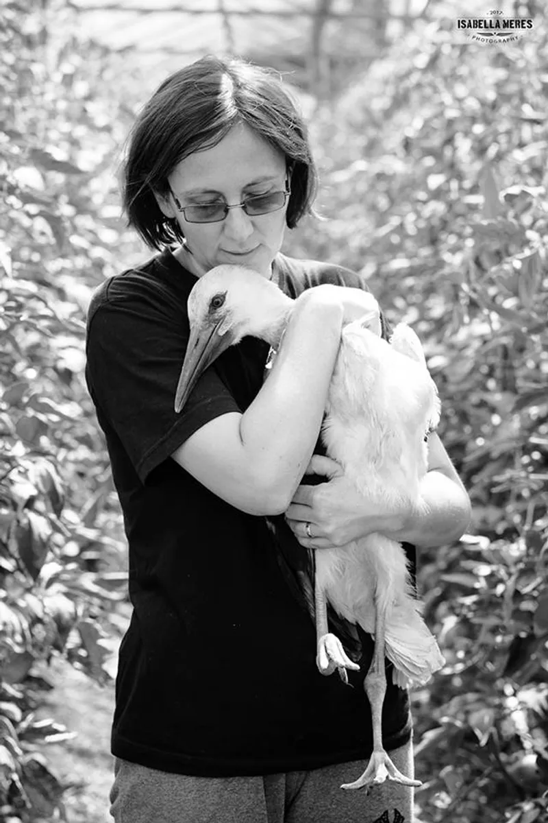 De îngrjirea „bărzuței” se ocupă doctorul Miruna Gritu, de la asociația „Prietenii Berzelor”, care, de 10 ani, adună în casa ei păsări rănite, care au nevoie de ocrotire.
