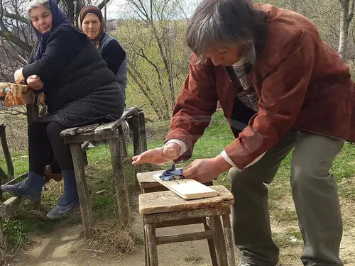 ”Pe la 18 ani, aici jos, la Punga, era un cămin cultural. Într-o zi cu ploaie, când să ne dezbrăcăm şi să ne lăsăm hainele, am văzut că nu avem unde. Nu erau cuiere şi am zis să iau eu nişte cuie apoi am început să le bat cu pumnul, pentru că nu aveam cu ce. După aceea am început să mă perfecţionez, ba cu cuie, ba cu pietre”, povesteşte Virgil Bâgiu.