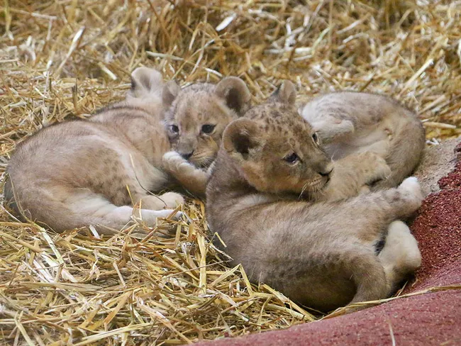 La cinci luni după ce s-au născut, grădina zoologică a anunţat că puii tripleţi ai unei leoaice sunt toţi femele.