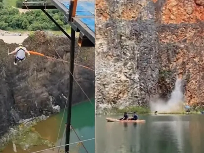 VIDEO Un bărbat care sărbătorea divorțul cade de pe un pod, de la 20 m, după ce coarda s-a rupt