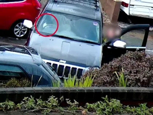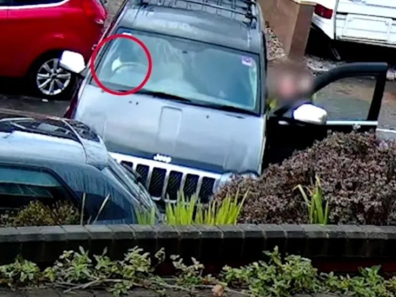 O cameră video a surprins momentul hilar în care un câine pare să conducă un Jeep într-o parcare.
