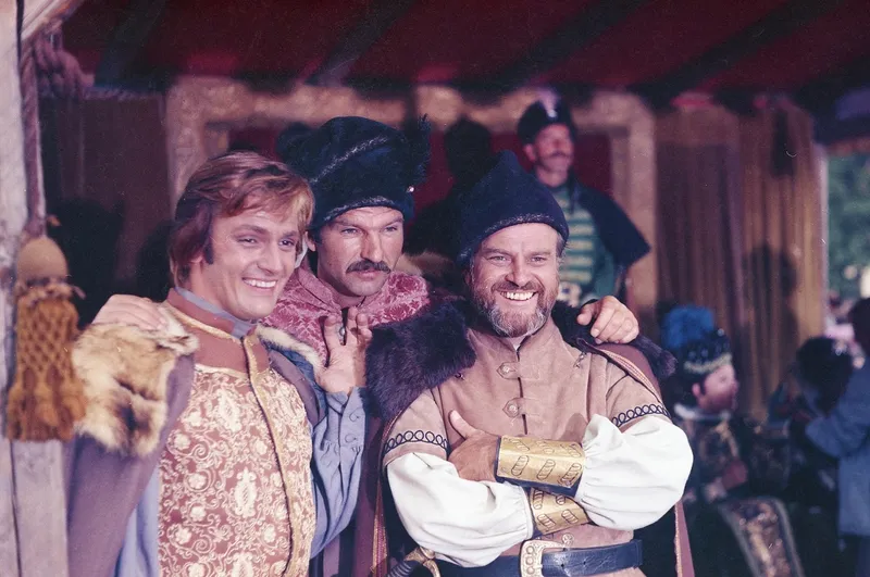 Septimiu Sever, primul din dreapta, a fost unul dintre frații Buzești, în „Mihai Viteazul”, alături de Ilarion Ciobanu și Florin Piersic - Foto: Facebook/Studiourile Buftea