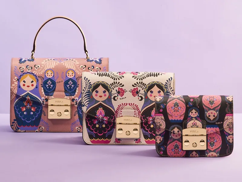 Iar producătorul de articole din piele Furla propune o colecție de poșete cu design inspirat din folclorul rusesc. În centrul atenției sunt tradiționalel păpuși Matrioșka.